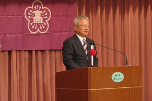 鹿商堀之内校長から学校の現状報告と創立130周年に向けて、歴史と伝統を新たな時代に向けて変革したいと力強い言葉がありました。