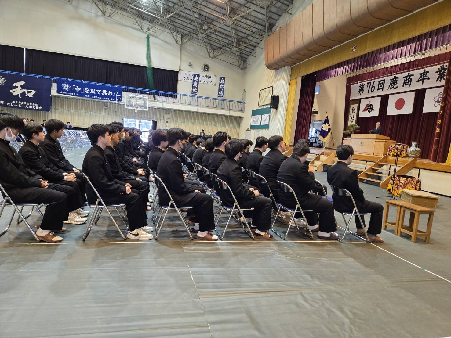 同窓会入会式が鹿商体育館にて行われました。